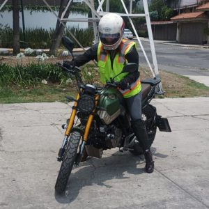 «Gracias Aarón por la clase de manejo de moto. Además del agradecimiento aprovecho para felicitarte por el profesionalismo con la que impartes la clase, así como por el resultado que obtuve, me diste tanta seguridad que si me lancé a la calle y ya estoy manejando mi propia moto. Para todas las personas que estén interesadas en aprender a manejar moto o retomar y perfeccionar el manejo, recomiendo que tomen tu curso, te deseo mucho éxito y espero que pronto nos veamos en las rodadas!!!»